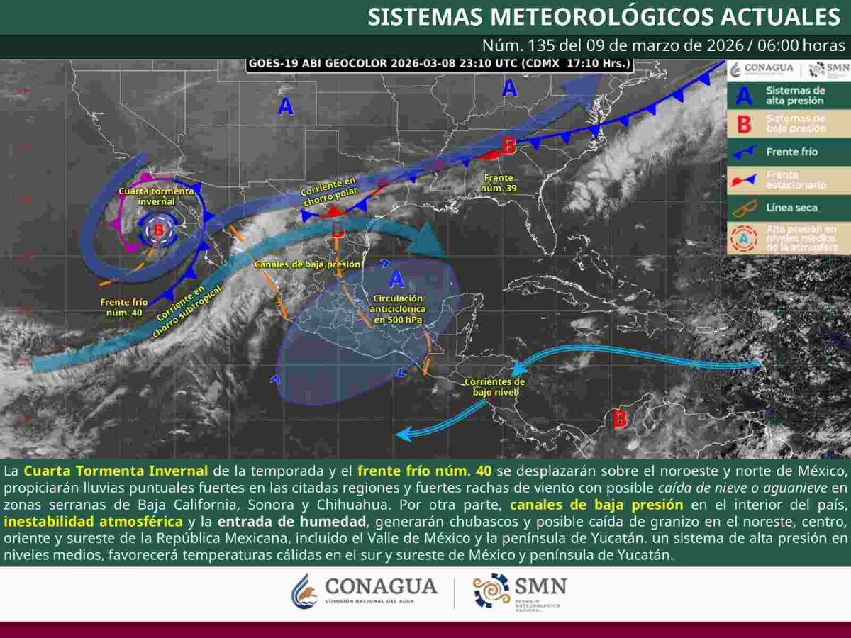 Además, se mantiene en vigilancia el frente frío número 40, que podría afectar al estado a partir de la tarde del miércoles y durante el jueves, con vientos fuertes, lluvias, oleaje elevado y posible descenso de temperatura.
