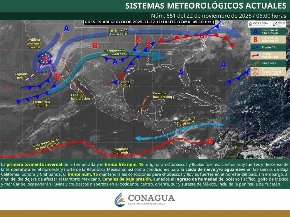 Protección Civil mantiene vigilancia por la aproximación del frente frío número 15.