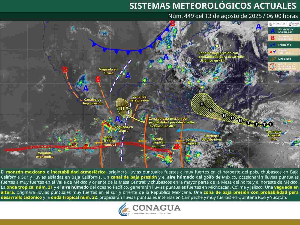 Se intensifica la temporada de ciclones con tormentas, vientos y mar de fondo desde Chiapas hasta Baja California.