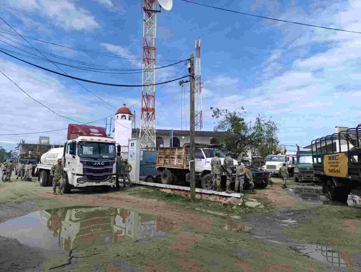 >>Sectur Oaxaca, Ejército y Ángeles Verdes entregan víveres y habilitan cocina comunitaria para apoyar a familias damnificadas.