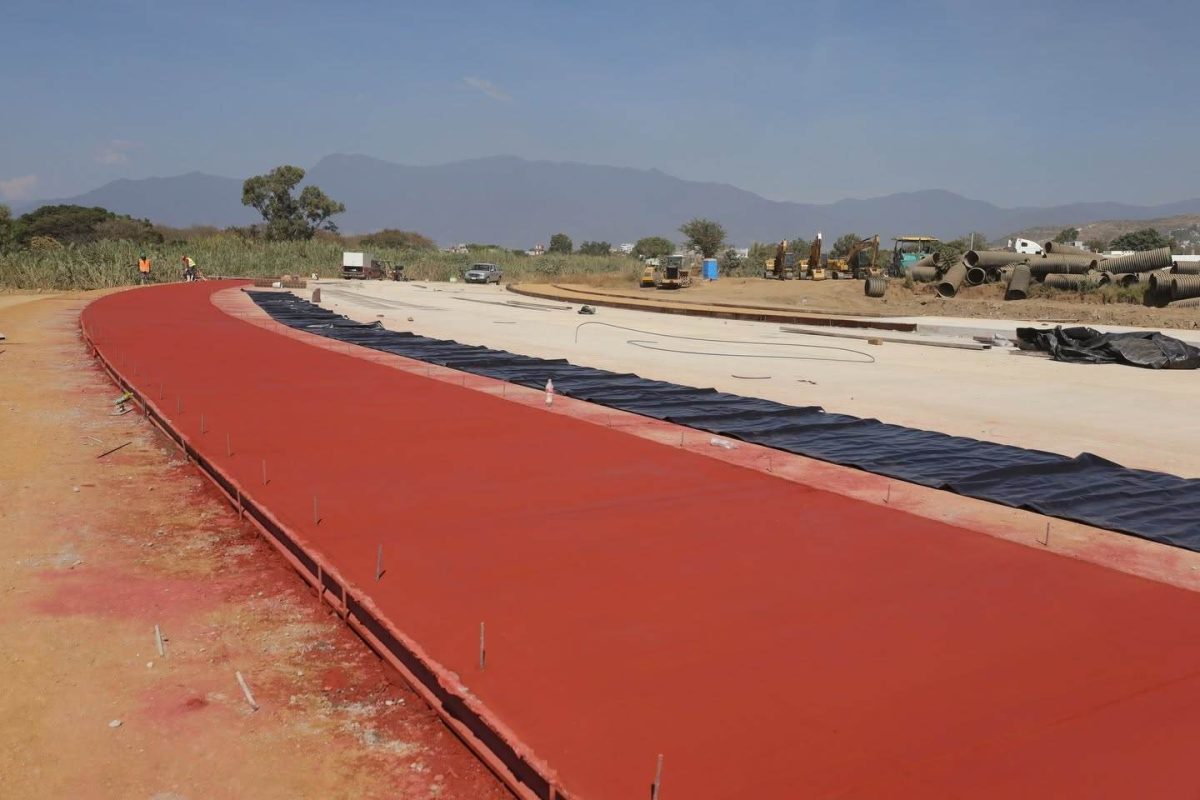 La Secretaría de Infraestructura y Comunicaciones (SIC) informó que se realiza el colado de la superficie de rodamiento de la ciclovía que conectará la zona de la Ex Garita con el Aeropuerto Internacional Benito Juárez de Oaxaca, en Santa Cruz Xoxocotlán.