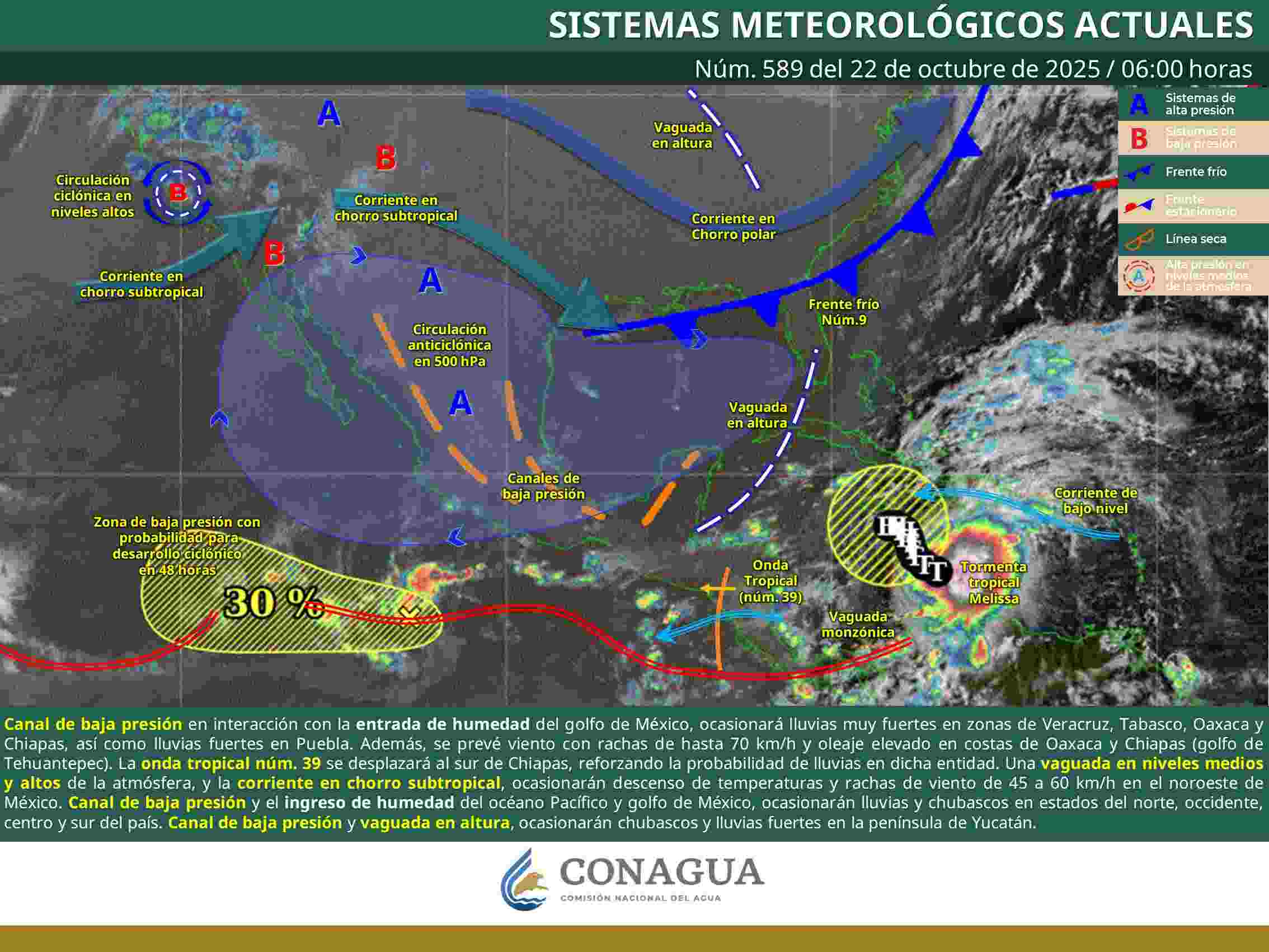 La CEPCyGR exhortó a la ciudadanía a seguir las recomendaciones oficiales y atender indicaciones de las Capitanías de Puerto, ya que podrían registrarse condiciones adversas para la navegación y para comunidades en zonas de riesgo por deslaves o crecidas repentinas de ríos y arroyos.