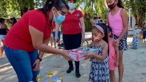 En su mensaje, Reyna Olmedo comentó “Sabemos que detrás del cubrebocas está ésa sonrisa que caracteriza a las niñas y los niños y eso nos motiva a poner nuestro mayor esfuerzo para llegar a sus localidades”.