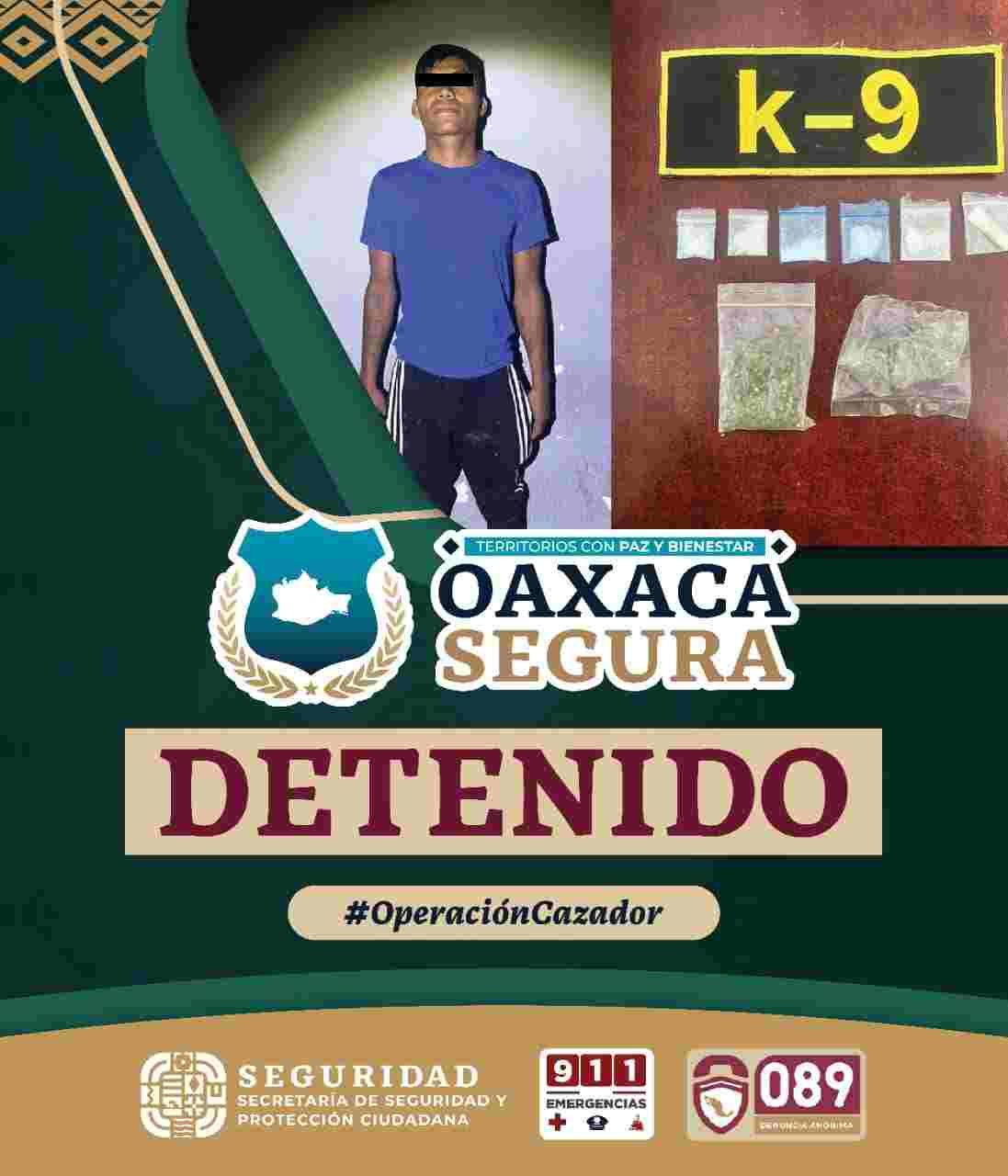 El detenido, identificado como E.A.L.S., y las sustancias aseguradas fueron puestos a disposición de la Fiscalía General del Estado de Oaxaca (FGEO) para determinar su situación jurídica conforme a la ley.