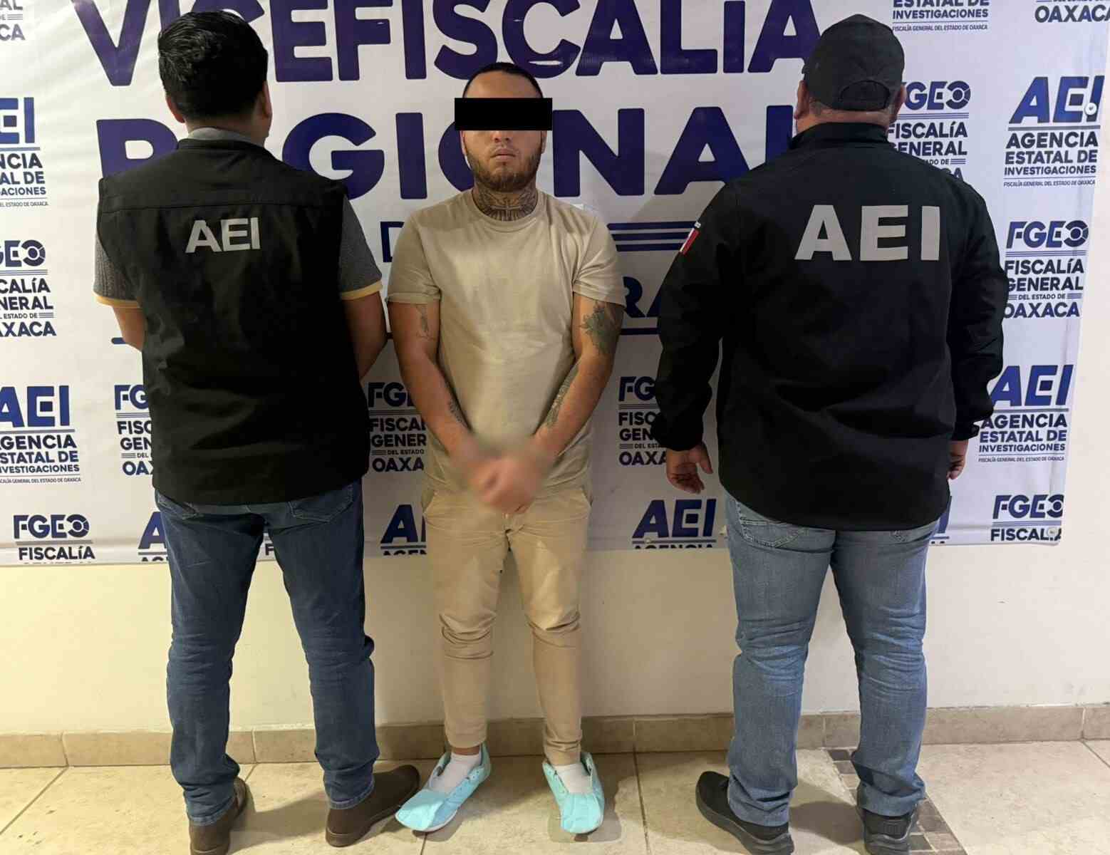 La captura fue realizada por elementos de la Agencia Estatal de Investigaciones (AEI), adscritos a la Vicefiscalía Regional de Valles Centrales, quienes pusieron al detenido a disposición de la autoridad competente para definir su situación jurídica.