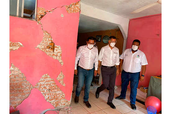 El recorrido para la evaluación de daños comenzó en el Hospital Comunitario de esta localidad, en donde el Mandatario Estatal, acompañado también por el presidente municipal, Giovanne González García, conversó con el doctor Alberto Aquino González, director de este nosocomio, que, por el momento, atiende a sus pacientes en la parte exterior del edificio, en espera del dictamen que les permita reingresar con seguridad, aunque no se prevén daños estructurales.