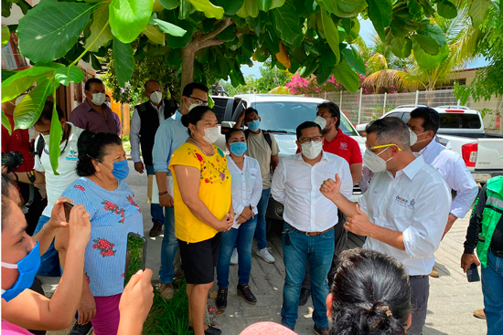 Murat Hinojosa conversó también con habitantes de esta comunidad costera para conocer de primera mano las preocupaciones de las familias afectadas por el sismo, ante quienes reiteró el compromiso del Gobierno del Estado para lograr que los daños sean reparados.