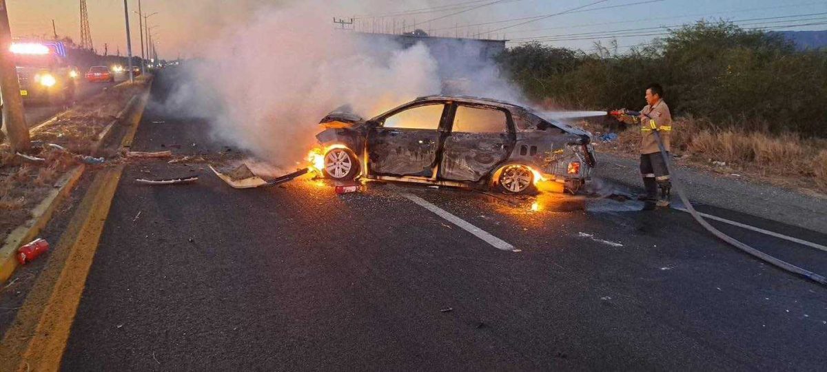 La mañana de este sábado, un trágico accidente vial se registró sobre la carretera Salina Cruz–Tehuantepec, a la altura del lugar conocido como Flor de Azalea, dejando como saldo un hombre fallecido tras quedar atrapado en su vehículo en llamas.