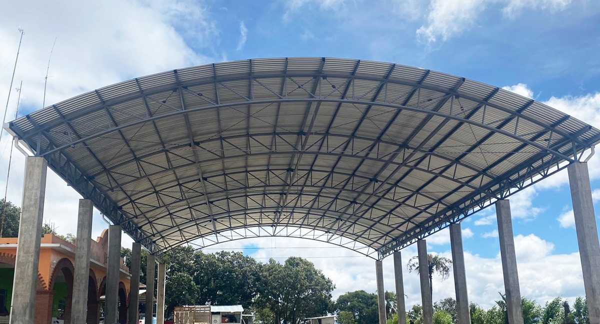 Según la titular de la Secretaría de Infraestructuras y Comunicaciones (SIC), Sildia Mecott Gómez, el techado abarca 666.54 metros cuadrados y está construido con armadura de acero y lámina galvanizada, soportada por 12 columnas de concreto con acero de refuerzo.