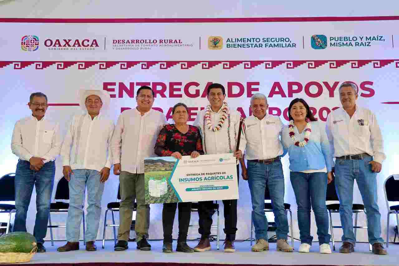 El Gobierno de Oaxaca entregó 2 mil paquetes de insumos agrícolas a más de 4 mil productoras y productores de los Valles Centrales, como parte de una estrategia para fortalecer la producción de maíz y avanzar hacia la soberanía alimentaria en la entidad.