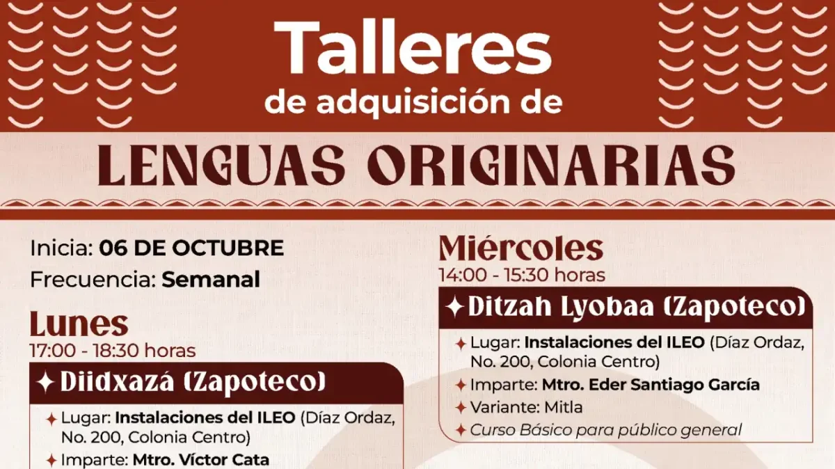 Con el propósito de preservar y revitalizar el patrimonio lingüístico de la entidad, el Gobierno de Oaxaca, a través del Instituto de Lenguas Originarias de Oaxaca (ILEO), convoca a la población a participar en los Talleres de Adquisición de Lenguas Originarias, que darán inicio el próximo 6 de octubre en la capital del estado.
