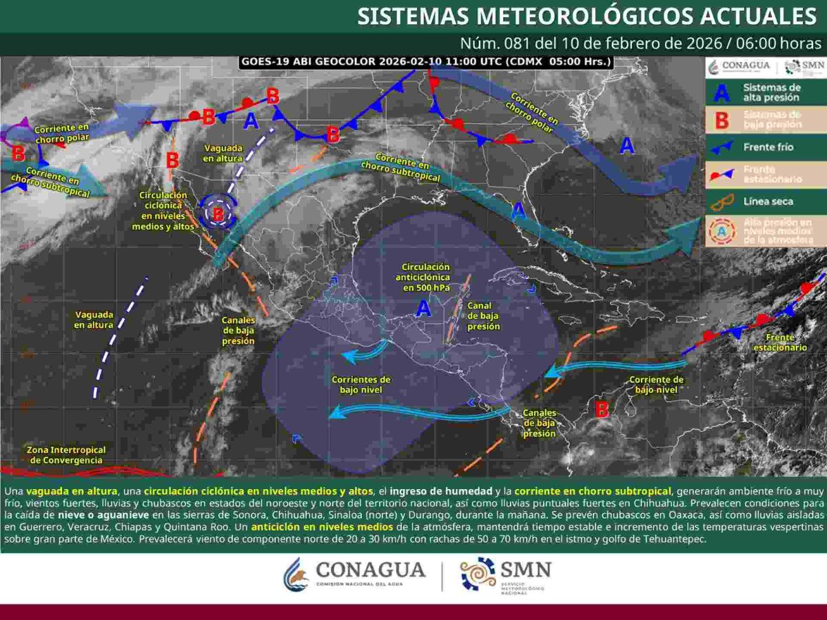 De acuerdo con autoridades meteorológicas, podrían presentarse heladas ligeras en áreas elevadas de la Mixteca y la Sierra de Juárez, principalmente durante las primeras horas del día, como consecuencia de poco viento y enfriamiento nocturno.