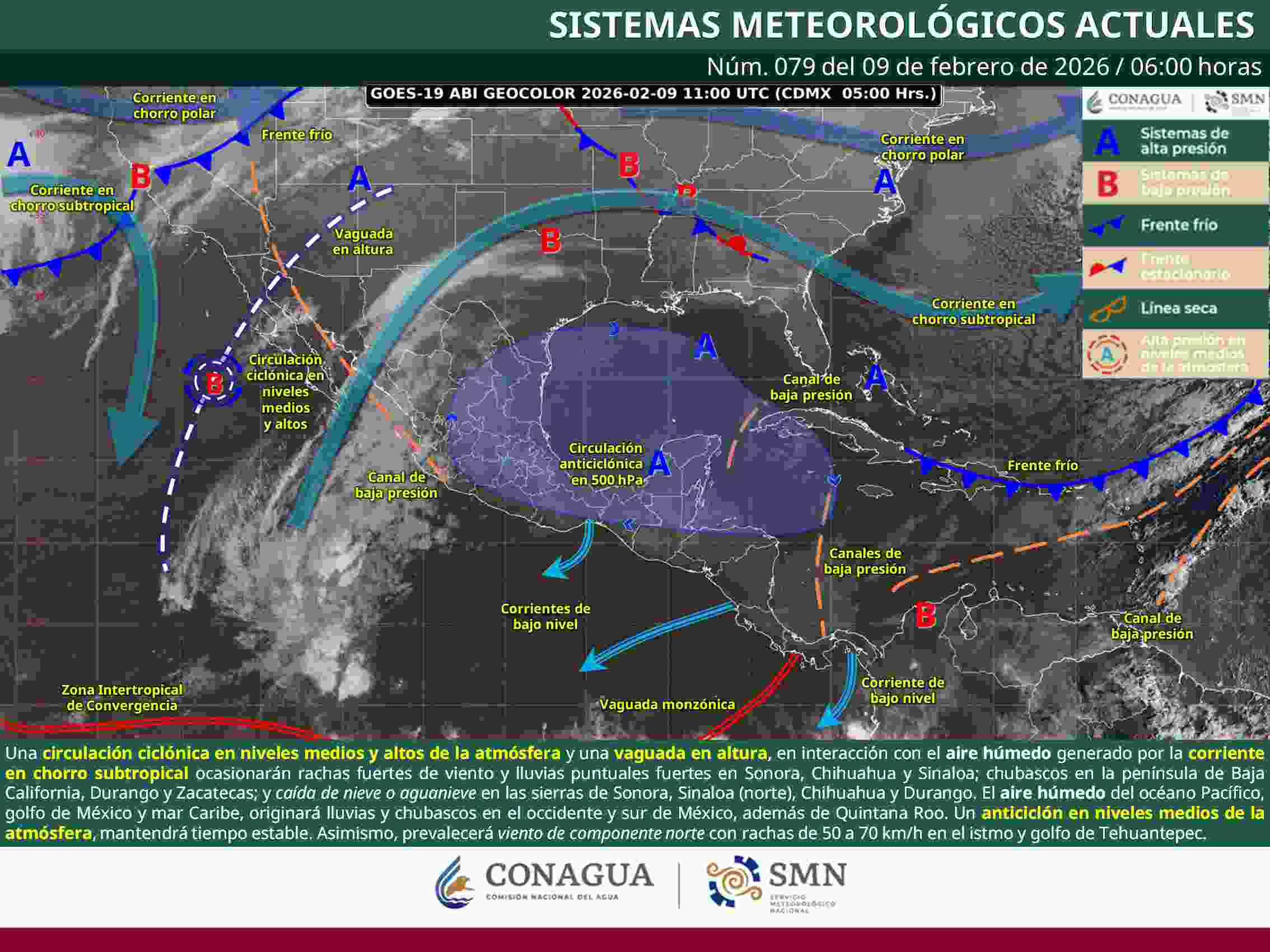En la región costera se prevé la continuidad de oleaje elevado, por lo que se recomienda a la población y a prestadores de servicios turísticos extremar precauciones en playas y actividades marítimas.