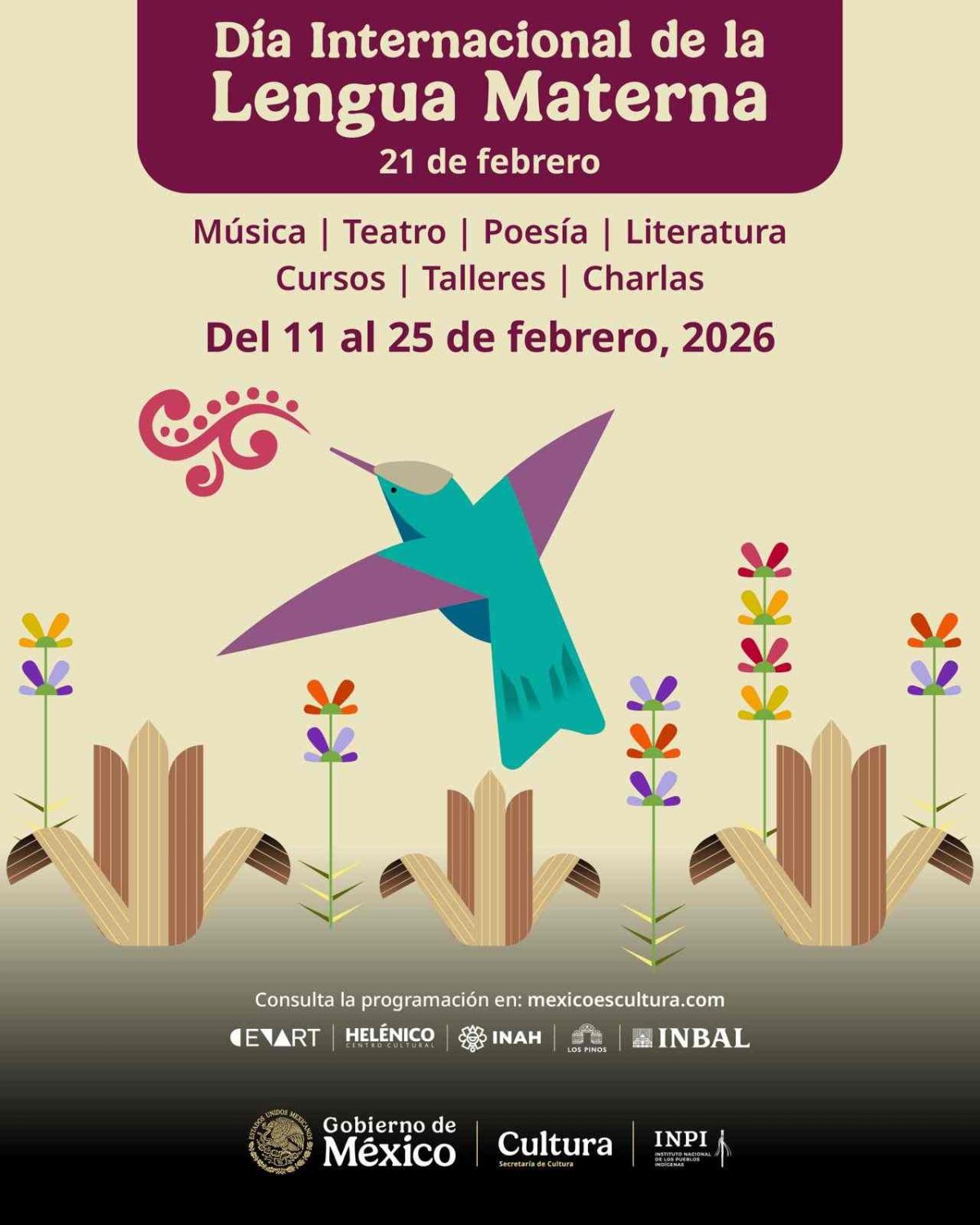 La Secretaría de Cultura del Gobierno de México, en colaboración con el Instituto Nacional de los Pueblos Indígenas (INPI), conmemorará el Día Internacional de la Lengua Materna 2026 con una amplia programación cultural en distintas sedes del país. Las actividades, que iniciaron el 11 de febrero y se extenderán durante el mes, incluyen propuestas escénicas, literatura, cine, música y talleres enfocados en la preservación y revitalización de las lenguas indígenas.