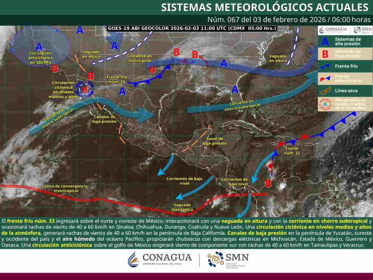 El sistema provocará heladas en zonas altas, vientos fuertes en el Istmo y oleaje elevado en el Golfo de Tehuantepec.