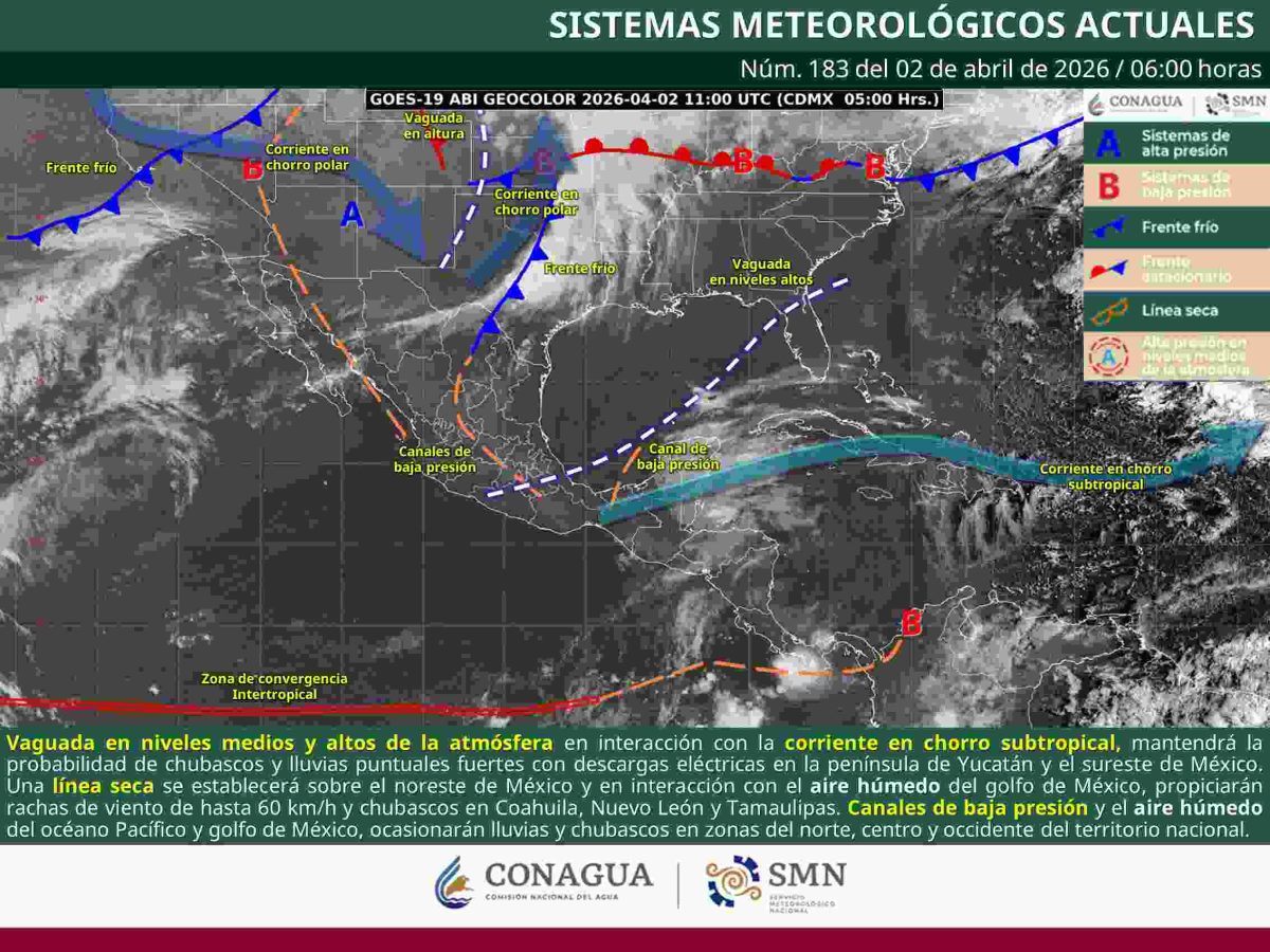Autoridades alertan por chubascos, viento fuerte y temperaturas de hasta 45 grados en varias regiones del estado