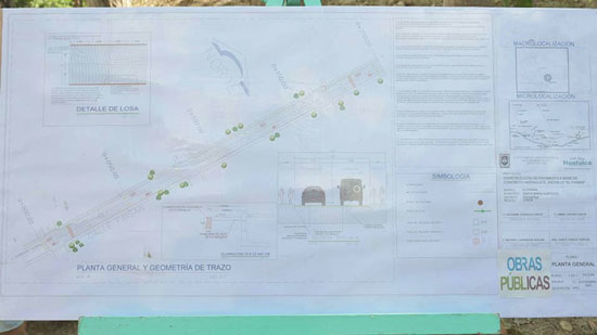 >> Ésta obra constará de pavimentación de 200 metros lineales a base de concreto hidráulico de esta comunidad de la agencia de Santa Cruz Huatulco, obra con la que serán beneficiadas más de 100 familias.