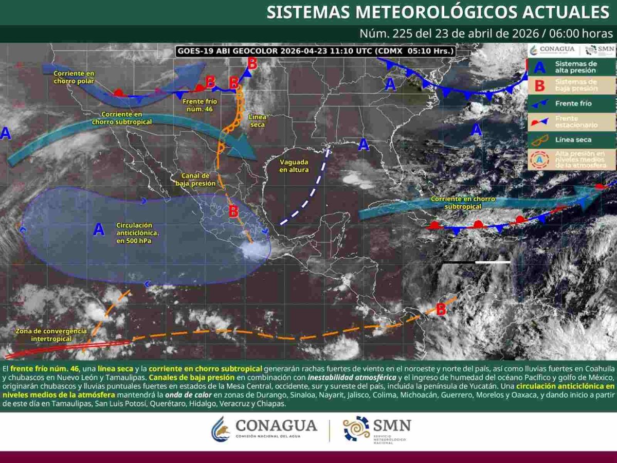 Estas condiciones climáticas están asociadas a la presencia de un canal de baja presión que se extiende desde la Mesa del Norte hasta el sureste del país, en combinación con el ingreso de humedad proveniente del océano Pacífico y el Golfo de México.