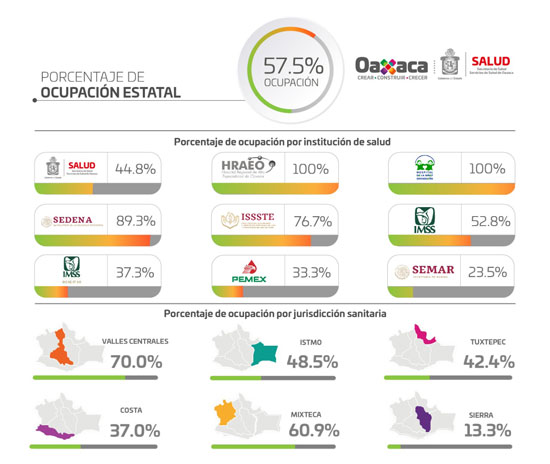 Dijo que hasta el momento hay un 57.5% de ocupación hospitalaria global, hay 12 hospitales al 100% de ocupación; hay 343 camas ocupadas y 254 disponibles de un total de 597.
