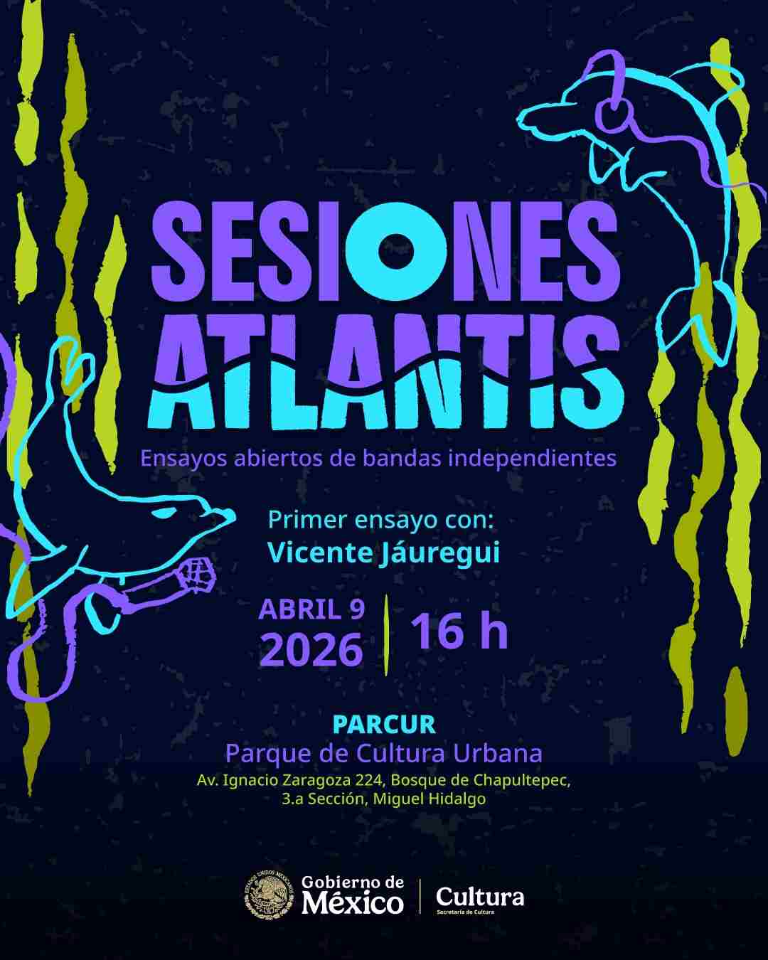 La Secretaría de Cultura del Gobierno de México, a través del Complejo Cultural Los Pinos, puso en marcha “Sesiones Atlantis”, una nueva iniciativa que convertirá al Parque de Cultura Urbana (PARCUR) en un punto de encuentro entre música en vivo, ensayos abiertos y diálogo con artistas emergentes durante todos los jueves de abril.