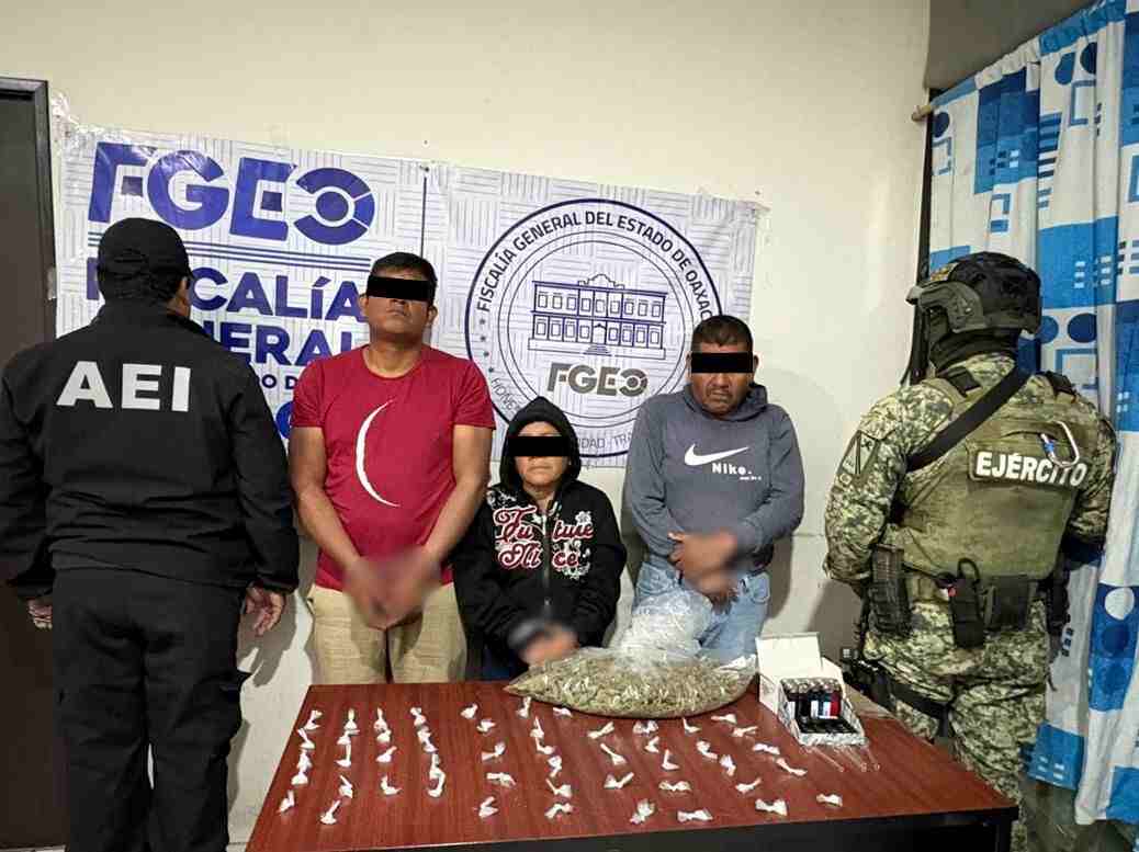 OAXACA DE JUÁREZ, Oax.- La Fiscalía General del Estado de Oaxaca obtuvo la vinculación a proceso de tres personas por delitos contra la salud en su modalidad de narcomenudeo, luego de un cateo realizado en el distrito de Tlacolula, en la región de Valles Centrales.